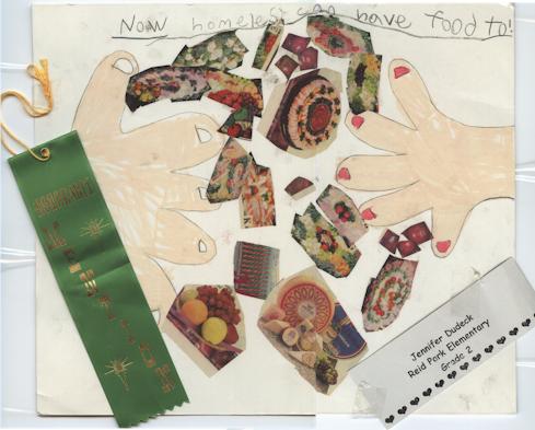 Jennifer's school participated in a poster contest sponsored by Loaves and Fishes, a Charlotte, NC hunger relief organization. The theme of the contest was "Children CAN Have Heart." Jennifer's poster was selected from all Kindergarten through third grade entries to go to the city competition, where she received Honorable Mention. It was displayed with twenty other posters in the county Government Center and in the county School District offices. Jennifer is 7 years old and in Second Grade.