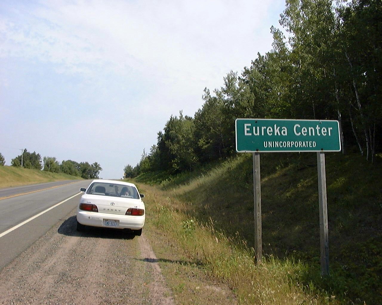 Next we headed out to western Wisconsin to look for a little crossroads called Eureka Center. We drove to St. Croix Falls, which is on the St. Croix river that makes the border with Minnesota. From St. Croix Falls we drove north six miles, and saw the sign for Eureka Center.